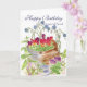 Cartão Placa de Buquê de Balde de Flor Feliz Aniversário