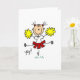 Um cheerleader de vareta numa saia vermelha com pom amarelo diz 'Yay!' nesta linda figura personalizável de vareta.