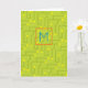 Placa de Circuito de Computador Moderna com padrão em verdes brilhantes e pontos amarelos. Inicial Monograma em azul aqua dentro de Quadrado Laranja. ADICIONE SUA MENSAGEM, ASSINATURA no interior. Fácil personalizar texto, cores do texto. Cartão de Boas Festas Colorido Divertido para qualquer amante da tecnologia. Misture e combine com a Coleção de Placas de Circuito por TMCdesigns.