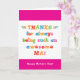 Você chama sua mãe de Mãe, não de mãe. Imaginem como as Mães entusiasmadas serão receber um cartão de Dia de as mães endereçado especialmente a ela! Suas mães também vão adorar a divertida e colorida design baseada em texto que diz "Obrigados por serem sempre Mães incríveis! Feliz Dia de as mães!" Torne este cartão personalizável! Clique em "Editar Design", "Dentro Inferior/Direito: Texto e imagens", "Texto" e "Adicionar texto" para escrever a sua própria mensagem personalizada no Mãe dentro!