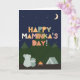 Cartão do dia do dia de as mães para Maminka. Você chama sua mãe de Maminka, não de mãe. (Maminka significa mãe em checo.) Traga à Maminka um cartão de Dia de as mães feito especialmente para ela! Esta bela carta à porta fechada é perfeita para qualquer Maminka que adora acampar, natureza, o exterior, e olhar para as estrelas no céu noturno com os seus filhos. O cartão de Dia de as mães apresenta um urso-mãe e um urso-criança sentados ao ar livre por uma fogueira e uma tenda na natureza olhando para as estrelas no céu e nas montanhas. O texto bonitinho ao estilo escandinavo diz: Feliz Dia de as mães, Maminka! Torne este cartão personalizável! Clique em "Editar Design", "Dentro Inferior/Direita: Texto e imagens", "Texto" e "Adicionar texto" para escrever a sua própria mensagem personalizada e personalizada no dentro de Maminka!