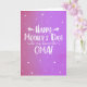 Placa de dia de as mães para Oma. Se você chama sua avó Oma em vez de vovó, este cartão de Dia de as mães é perfeito para ela. (Oma significa avó em alemão.) O seu pai vai adorar o design de bolhas cor-de-rosa, roxo e branco divertido desta carta de Dia de as mães que diz "Dia de as mães feliz para a minha mãe favorita!" Torne este cartão personalizável! Clique em "Editar Design", "Dentro Inferior/Direita: Texto e imagens", "Texto" e "Adicionar texto" para escrever a sua própria mensagem personalizada e personalizada em Oma dentro!