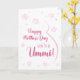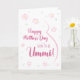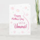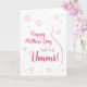 Ummi grávida com cartão de dia de as mães. Este Cartão de Dia de as mães é perfeito para o esperado Ummi em sua vida. (Ummi significa mãe em árabe.) A futura ummi vai adorar o design floral fofo deste cartão com um desenho minimalista da barriga e flores cor-de-rosa de uma mulher grávida. Diz: "Feliz Dia de as mães para o futuro Ummi! Este cartão de Dia de as mães será batido com qualquer mãe grávida cujo bebê a chamará de Ummi. Torne este cartão personalizável! Clique em "Editar Design", "Dentro Inferior/Direito: Texto e imagens", "Texto" e "Adicionar texto" para escrever a sua própria mensagem personalizada e personalizada no dentro Ummi!