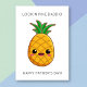 Retire as risadas deste Dia do Pai com o nosso hilário cartão "Olhando Pine Daddio". Apresentando um trocadilho de abacaxi brilhante, é perfeito para o pai que é um pouco frutado e sempre em bom espírito. Personalize a mensagem dentro para aumentar o humor ou adicionar uma nota sincera. Você pode personalizar este design clicando em "Personalizar este modelo" ou se quiser alterar a fonte, as cores ou organizar os elementos design de uma forma diferente, você pode clicar em "Editar usando a Ferramenta Design".
