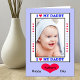 Esta placa de Dia de os pais de Pai apresenta como ponto focal uma foto fofa da sua pequena no meio de uma moldura que diz "Eu coração meu Pai" em dois lados. As palavras Dia de os pais Feliz aparecem na parte inferior com a palavra dentro do Pai coração vermelho. Uma maneira personalizada e adorável de dizer Dia de os pais feliz para seu Pai especial. Copyright Kathy Henis