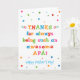 Você chama seu pai de Apá, não de Pai. (Apá significa pai em espanhol.) Imagine como o apá ficará animado ao receber um cartão de Dia de os pais endereçado especialmente a ele! Seu apá também vai adorar o design brilhante e colorido desta carta que diz "Obrigados por ser sempre um apá tão incrível! Feliz Dia de os pais!" Torne este cartão personalizável! Clique em "Editar Design", "Dentro Inferior/Direita: Texto e imagens", "Texto" e "Adicionar texto" para escrever a sua própria mensagem personalizada e personalizada no dentro Apá!