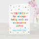Você chama seu pai de Apu, não de Pai. (Apu significa pai em húngaro.) Imaginem como Apu ficará entusiasmada em receber um cartão de Dia de os pais endereçado especialmente a ele! Sua apu também vai adorar o design brilhante e colorido desta carta, que diz "Obrigados por ser sempre uma Apu incrível! Feliz Dia de os pais!" Torne este cartão personalizável! Clique em "Editar Design", "Dentro Inferior/Direita: Texto e imagens", "Texto" e "Adicionar texto" para escrever a sua própria mensagem personalizada e personalizada no Apu dentro!