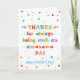 Você chama seu pai de pai, não de Pai. Imaginem como o pai ficará entusiasmado em receber um cartão de Dia de os pais endereçado especialmente a ele! Seu pai também vai adorar o design brilhante e colorido da Dia de os pais que diz "Obrigados por ser sempre um pai incrível! Feliz Dia de os pais!" Torne este cartão personalizável! Clique em "Editar Design", "Dentro Inferior/Direito: Texto e imagens", "Texto" e "Adicionar texto" para escrever a sua própria mensagem personalizada e personalizada em Pa dentro!