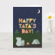 Cartão do dia do dia de os pais para Tata. Você chama seu avô de Tata, não vovô. Tata significa avô em Telugu. Então, arranja um cartão de Dia de os pais para o Tata, feito especialmente para ele! Esta bela carta externa é perfeita para qualquer Tata que adora acampar, a natureza, o exterior, e olhar para as estrelas no céu noturno com os seus filhos. O cartão de Dia de os pais apresenta um ursinho de avô e um ursinho de netos sentados ao ar livre por uma fogueira e uma tenda na natureza olhando para as estrelas no céu e nas montanhas. O texto bonitinho ao estilo escandinavo diz: Feliz Dia do Avô, Tata! Torne este cartão personalizável! Clique em "Editar Design", "Dentro Inferior/Direita: Texto e imagens", "Texto" e "Adicionar texto" para escrever a sua própria mensagem personalizada e personalizada no dentro de dados!