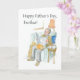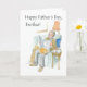 Um cartão de Dia de os pais para um Irmão com um homem relaxando com seu jornal com um gato no colo e um cachorro ao seu lado, de uma ilustração de aquarela de Judy Adamson. Sinta-se à vontade para alterar ou apagar o texto do dentro e, se precisar de alterações no texto frontal, entre em contato comigo através da minha loja.