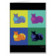 Uma imagem do esquilo fotoomanipulada num estilo de pop art em azul, verde, amarelo, laranja, turquesa e roxo contra um fundo preto