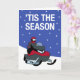 Este inverno ou uma engraçada design de Natal tem um movente de neve vermelho e moto de neve lá fora, de trenó, em um fundo azul com neve. Esta design é para qualquer um que esteja ansioso para a temporada de skidoging.