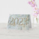 Esta carta dobrada de Feliz ano novo brilhante e mármore é a maneira perfeita de tocar no novo ano. Um estilo mais moderno com matizes azuis legal, o fundo é elegante em todo o design de mármore com faíscas de brilho. A frente da placa apresenta números extras grandes de ouro (tan) com eucalipto e detalhes falsos de ouro.