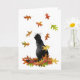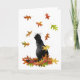 Um gato preto assiste as folhas coloridas que caem neste cartão de outono, adicione suas próprias palavras para personalizar.