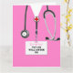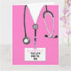 Design com tema médico criativo, com escovas cor-de-rosa. Editar texto para adicionar nome e credenciais médicas.
