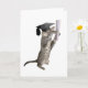 Um gatinho de mesa vestindo um boné de formatura preto fica em duas pernas para segurar um diploma. Envie este cartão de formatura divertido para felicitar o seu estudioso favorito. Clique em personalizar para adicionar suas próprias palavras.