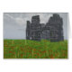 Uma cena 3D criou em Vue, mostrando o local de uma batalha antiga, com apenas as ruínas desmoronantes de uma torre de pedra medieval e flores vermelhas na grama para comemorar. A chuva em queda e o efeito de aquarela macia aumentam a tristeza da cena do topo da colina.