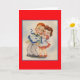 Placa de anotação Vintage / Retro. Adorável jovem tentando colocar um avental em um jovem surpreso! Perfeito para qualquer ocasião!