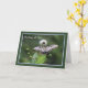 Cartão de nota de vazio com borboleta sobre uma flor selvagem, e uma mosca no lado oposto da flor. Captura muito rara. Foto de M.