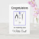 A placa de Parabéns branca apresenta um casaco branco e um estetoscópio. ©2013 Kreative Sentiments Cards por Sherry Harris