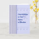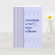 A placa de parabéns de Graduação em Educação é um design azul claro (as cores de Graduação) com chapéus de graduação, um grau e um design lateral à esquerda da placa. Perfeito para um grau de educação.
