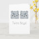Bem-vindos aqueles bebês preciosos com esta adorável carta dos gêmeos boho. A frente apresenta dois chapéus bonitos de bebês de boho. Na dentro está uma pequena e doce mensagem que você pode personalizar e é perfeita para acolher novos gêmeos bebês. Apresenta chapéus de bebê aquarela para um conjunto de gêmeos. Você pode personalizar este design clicando em "Personalizar este modelo" ou se quiser alterar a fonte, as cores ou organizar os elementos design de uma forma diferente, você pode clicar em "Editar usando a Ferramenta Design".