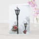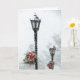 A lâmpada posta na histórica Rua Leyden, em Plymouth, Massachusetts, maravilhosamente decorada com mortes e arcos vermelhos na época de Natal. Esta fotografia foi tirada durante uma tempestade de neve.