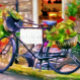 O que fazer com a sua bicicleta velha - usá-la para promover o seu negócio e decorá-la com flores! País de Gales, Reino Unido.