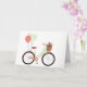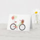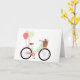 Bicicleta giratória adorável com balões e tulipas na cesta. Ar quente e sol. Tema de cor bonito.