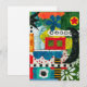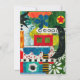 Centro é uma colagem de mídia mista que apresenta formas coloridas, listras, círculos, flores e outros arranhões divertidos.