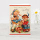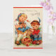 Placa de saudação do Dia de as mães retrorreflector/Vintage. Garoto e garota adoráveis com uma cesta de maçãs e biscoitos Gingermore para Mamães. Feliz Dia de as mães, Mamãe!