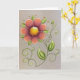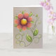 Design único com uma flor pastel com pétalas cor-de-rosa macia e folhas verdes delicadas. Perfeito por enviar saudações de primavera a amigos ou entes queridos. Vazio no dentro.