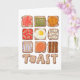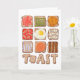 Ilustração original de seis pedaços de torrada com compota, ou geleia, espargos, manteiga de amendoim, fatias de tomate, ovo frito, cogumelos, sardinhas, feijão assado e salsichas. Escolhas deliciosas para um recheio, café da manhã delicioso ou almoço. Perfeito para um amante de café da manhã, brunches e comida!