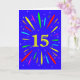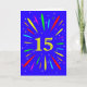 Um cartão de aniversário de 15 explosivo! Que maneira maravilhosa de enviar cartões de aniversários. O número 15 em amarelo brilhante com uma explosão de cores brilhantes e estrelas.