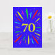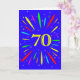 Um cartão de aniversário de 70 explosivo! Que maneira maravilhosa de enviar cartões de aniversários. O número 70 em amarelo brilhante com uma explosão de cores brilhantes e estrelas.