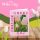 Brincadeira certeira e cor-de-rosa. Dia de as mães feliz com uma bela representação de um grupo de tulipas. Dentro diz: "Que seu dia seja passado rindo com aquele que você ama! Um belo cartão de Dia de as mães para dar à família e aos amigos.