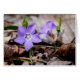 Um armário de um par de flores roxas do Periwinkle (Vinca minor) que crescem no chão da floresta.