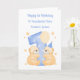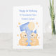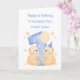 Este cartão de primeiro aniversario é adequado para filhos, netos ou amigos gêmeos. A design inclui ursos de pelúcia criança, chapéu de festa, balões e estrelas laranja.