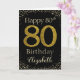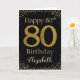 Cartão Placa Glitter do Ouro de Aniversário do 80