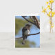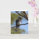 Phoebe Preto, Sayornis nigricanos, "flycatcher". Pássaro preto com barriga branca. O pássaro está sentado no galho da árvore com a cabeça à luz do sol. Você pode personalizar o dentro saudando "Pensando em você..." a sua própria mensagem. A descrição do pássaro está no verso do cartão.