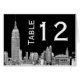 NYC Skyline Etch Olhar 01 Invitation Suite Preto & Branco, Fundo Preto Mostrado: Escolha Sua Cor de Fundo - Placa de Número de Tabela ======== Elegante, na moda, convites personalizáveis de chic e acessórios com uma visão icônica da linha do Nova Iorque, com uma foto de aparência gravada do Edifício ESB e Chrysler e a visão traseira do Edifício Flatiron mostrada em um fundo negro. Você pode escolher uma cor de fundo diferente clicando no botão "Personalizar" e escolhendo "Fundo" no menu suspenso Editar. Você também pode alterar as cores do texto clicando nos campos que deseja alterar e clicando na caixa de cores exibida acima dos campos. Você também pode adicionar ou remover campos de texto, alterar fontes etc. Este produto faz parte de um conjunto de designs correspondentes que são facilmente personalizáveis para muitas ocasiões e eventos. Se você precisar de placas RSVP separadas, Obrigado, Notas, Carimbos, ímanes, etiquetas de favorecimento, cartões de escolta, etiquetas de vinho, menus, programas de eventos ou outros acessórios, por favor veja nossas outras listas. 2013 ©NYCisMyMuse