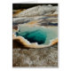 Uma fotografia de uma piscina térmica em Primaveras Quentes Mammoth, Parque Nacional Yellowstone.
