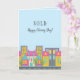 Cartões "SOLD - Feliz Dia de Fechamento!" para agentes imobiliários. Excelente para vendedores no fechamento. A design apresenta um bairro urbano fofo sobre um fundo azul claro. Perfeito para imóveis residenciais, mutuantes hipotecários, agências de títulos, serviços de inspeção no domicílio, etc.