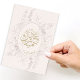 O cartão apresenta uma flor rústica que adiciona um toque de charme e sofisticação ao design geral. A intrincada caligrafia acrescenta um toque personalizado e sincero à mensagem, fazer que seja uma maneira realmente especial de celebrar essa alegre ocasião com a família e os amigos.
