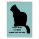 Silhouette Gato. O texto frontal "Eu ainda estarei aqui quando você voltar" está abaixo da silhueta de um gato preto. Dentro de texto "Venha para casa logo!" Personalize uma ou ambas as mensagens de texto.