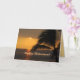 Personalize! Como pôrs do sol tropicais ao redor do mundo, pôrs do sol ao longo da costa de Kalua-Kona na Grande Ilha do Havaí são maravilhosos todos os dias! Na parte de trás do cartão está outra vista do pôr do sol quando um barco de pesca volta ao porto.