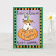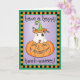 Mande saudações de Halloween com este cartão de um cachorrinho bonitinho da Miniatura Bull Terrier em um sorridente Jack-o-Lanterna. Excelente para crianças de todas as idades que amam MBTs e Halloween. Tenha uma boa HOWL-oggy!