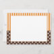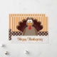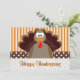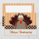 Bela Cartoon Turquia Feliz Cartão de Ação de Graças. Bolinhas castanhas e brancas e faixas laranja.