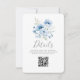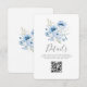Cartão plano azul de cerimônias de detalhes de QR floral. Fácil de alterar o texto e adicionar o URL ao código QR. Bonito, elegante, floral de aquarela com arestas arredondadas.