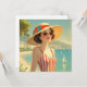 Anúncios de Viagem francês e europeu em língua oficial - Ilustração de praia, aldeia, pessoas, mar azul e céu